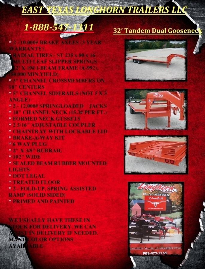 Family owned and operated This is our gooseneck trailer. 2020 LONGHORN TRAILERS GOOSENECK 32 TANDEM DUAL GOOSENECK OTHER SIZES AVALIABLE ALSO 22500. Longhorn Trailers in Emory TX.