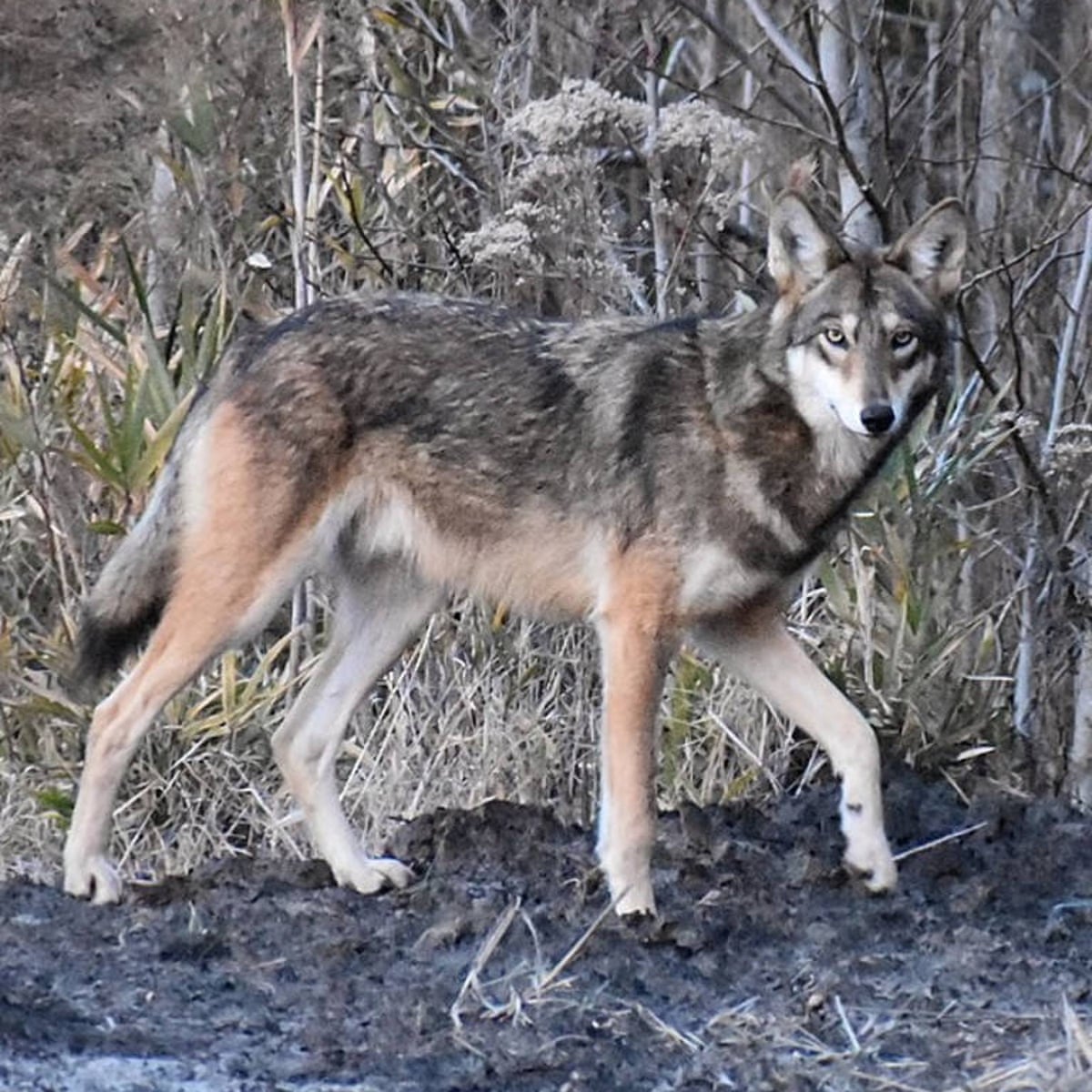 The classic scientific view holds that the red wolf is a distinct species that generally falls between a gray wolf and a coyote in size with adults measuring up to 63 inches. Red wolves inhabit upland and bottomland forests coastal prairies swamps and marshes. The red wolfs undersides vary in color from near white to a pinkish buff.